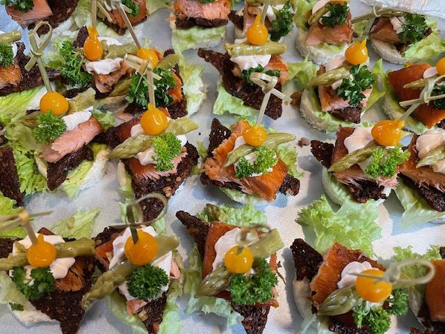 Capaneer med pålæg, laks, æg og rejer